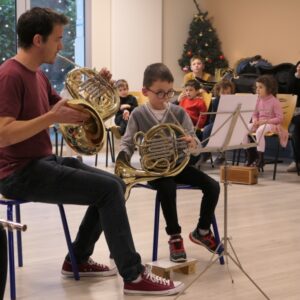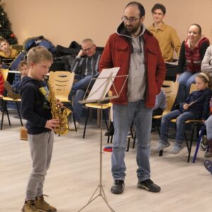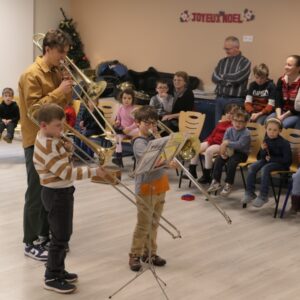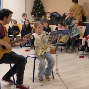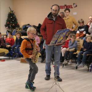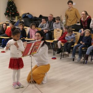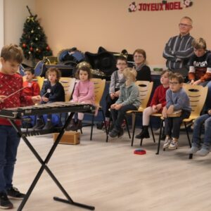 La première partie a été consacrée aux instrumentalistes de première année. Pour beaucoup d’entre eux, il s’agissait de leur tout premier morceau joué devant un public. Les jeunes musiciens ont été accompagnés par leur enseignant ou l’un de leurs parents, offrant un moment émouvant et encourageant.