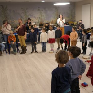 La seconde partie a mis à l’honneur les groupes d’éveil musical. Les enfants ont interprété un conte musical spécialement écrit pour eux par Anne Élie, mêlant narration, musique et chant, pour le plus grand plaisir des résidents.