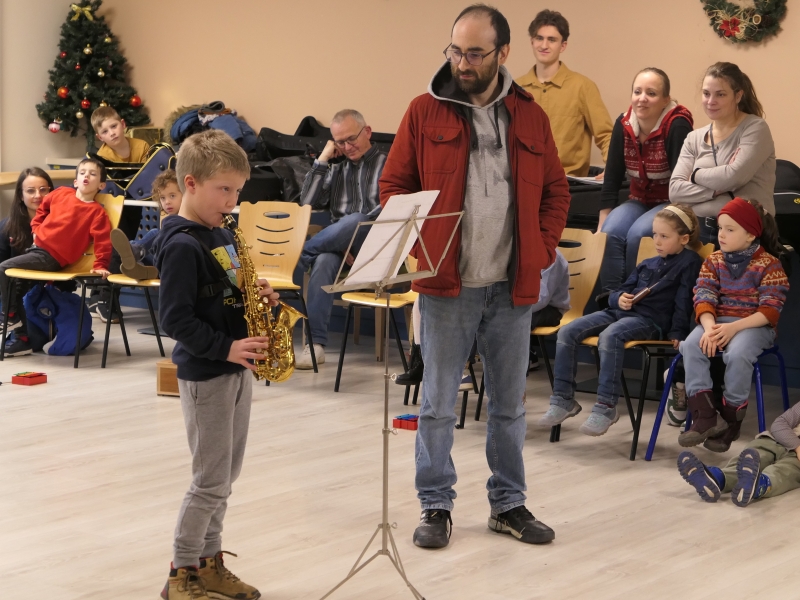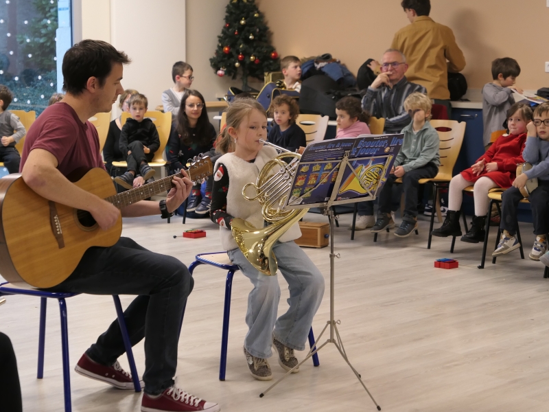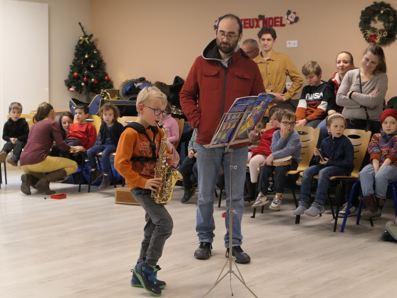 La première partie a été consacrée aux instrumentalistes de première année. Pour beaucoup d’entre eux, il s’agissait de leur tout premier morceau joué devant un public. Les jeunes musiciens ont été accompagnés par leur enseignant ou l’un de leurs parents, offrant un moment émouvant et encourageant.