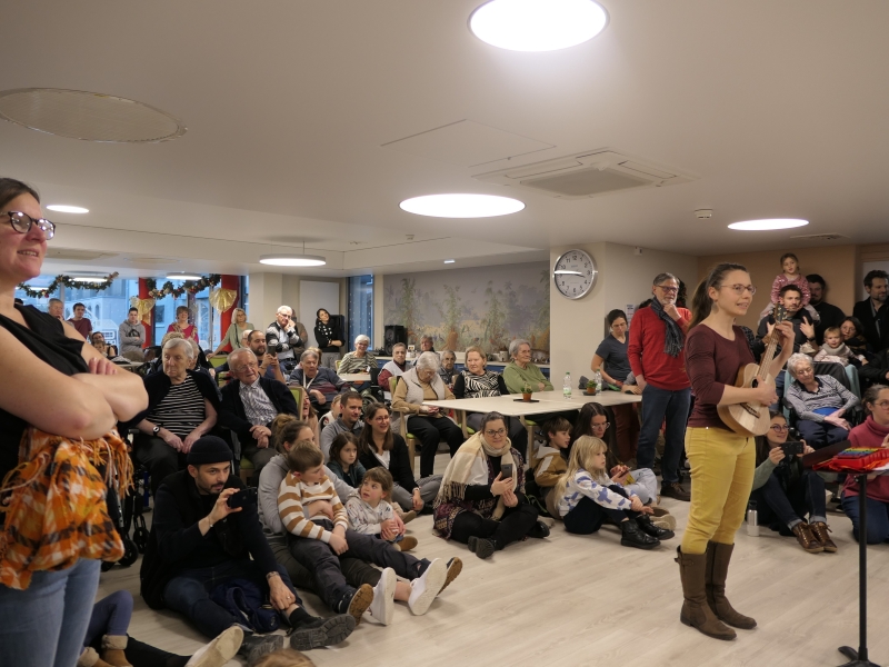 La seconde partie a mis à l’honneur les groupes d’éveil musical. Les enfants ont interprété un conte musical spécialement écrit pour eux par Anne Élie, mêlant narration, musique et chant, pour le plus grand plaisir des résidents.