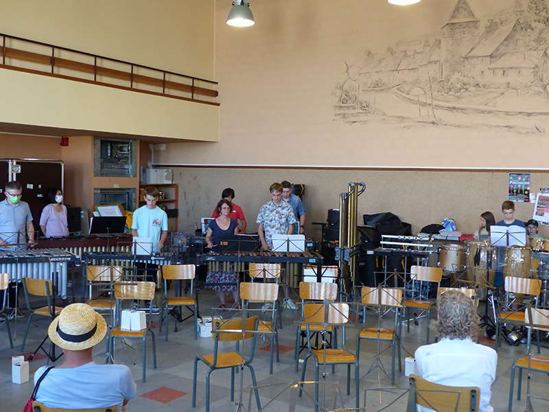 L’après-midi a démarré par les habituelles pré inscriptions courues par les habitués dans l’espoir d’une rentrée plus sereine. Puis, profitant de l’ombre des arbres dans la cour, les musiciens ont pris le relais pour leur audition de fin d’année. Les différents pupitres et enseignants ont présenté, à tour de rôle, des morceaux mettant en valeur les progrès réalisés. L’Ensemble des Jeunes, enfin, a présenté une partie du répertoire travaillé sous la direction de Céline PELLMOND.
