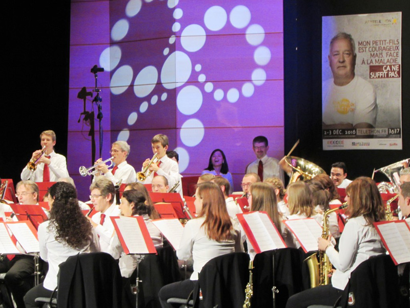 Quelle ambiance pour cette 13e édition du concert en faveur du Téléthon à l’Espace Culturel du Parc à Ribeauvillé. Le public nombreux présent ne s’est pas trompé. Le ton a été donné par le Terkabrass sous la direction de Caroline Fussner par une superbe interprétation du chant du veilleur de nuit de Turckheim. Le déroulé du programme musical a fait monter la température et c’est dans cette ambiance que l’orchestre d’harmonie sous la direction de Patrick Porretti a pris le relais. Oeuvres remarquables, superbes solos de Laure au basson, Olivier à la trompette. Et pour clore les prestations un pot pourri entraînant de chansons françaises qui a fait chanter la salle. Et le chef a mené tout ceci de main de maître. Aïcha Fritsch, coordinatrice du téléthon n’a pas manqué de souligner la qualité de l’engagement des musiciens au service des oeuvres du Téléthon.